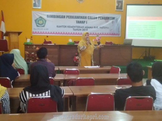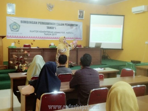 Natuna, Radar Kepri- Menuju keluarga yang kokoh, sakinah, sehat, serta dapat menghadapi komflik dalam keluarga, Kementerian Agama Kabupaten Natun adakan Bimbingan Perkawinan Pra Nikah (Bimwin) kepada dua puluh tiga pasang calon penganten yang telah mendaftar ke KUA serta pasangan muda yang baru menikah dengan jumlah peserta 46 orang peserta.