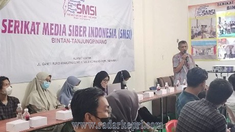 Tanjungpinang, Radar Kepri-Ketua Serikat Media Siber Indonesia (SMSI) Kepri Zakmi Piliang mengapresiasi tingginya minat Mahasiswa mengikuti pelatihan Jurnalistik. Hal itu ia katakan saat menjadi pemateri diacara pelatihan jurnalistik tingkat perguruan tinggi Tanjungpinang yang digelar oleh SMSI Bintan yang diikuti kurang lebih 30 Mahasiswa peserta dari Dua Universitas Negeri yang ada di Tanjungpinang, Kamis (3/3).