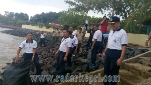 Kerja bhakti membersihkan pantai dari sampah dihadiri Sekda Kota Tanjungpinang, Wadan Lantamal IV, Kasiop Korem 033/WP, Wakapolres Tanjungpinang, Kadisops Lanud RHF, Camat Tanjungpinang Barat, Ketua Korcab IV DJAB dan Unsur Pemda Kota Tanjungpinang.(Dispen Lantamal IV/Wok)