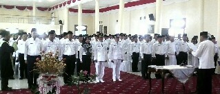 Natuna, Radar Kepri-Bupati Kabupaten Natuna, Drs.H.Abdul Hamid Rizal, Jumat,(30/12) pada pukul 14.30 WIB sore ini secara resmi melantik dan mengambil sumpahnya sekitar 600 orang pejabat eselon II, III dan IV di Gedung Sri Serindit jalan Yus Sudarso Batu Hitam Ranai Kabupaten Natuna.