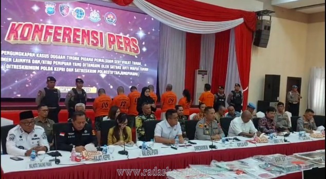 Penjelasan resmi ke publik atau konfrensi pers ini dilaksanakan di Mapolda Kepri, Batu Besar, Nongsa, Kota Batam dipimpin langsung Kapolda Kepri, Irjen Asep Safrudin dihadiri sejumlah petinggi Polda Kepri dan anggota DPR RI, Rizky Faisal, Walikota Tanjungpinang, H Lis Darmansyah SH kepala Kanwil BPN ATR Provinsi Kepri.