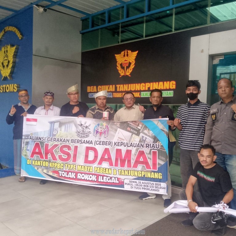 Tanjungpinang, Radar Kepri – Aksi damai yang digelar Aliansi Gerakan Bersama (GEBER) Kepulauan Riau di Kantor Bea Cukai Tanjungpinang, Senin (25/8), berjalan tertib dan tanpa gesekan. Alih-alih menggelar orasi panjang di lapangan, massa memilih jalur dialog langsung dengan pihak Bea Cukai.