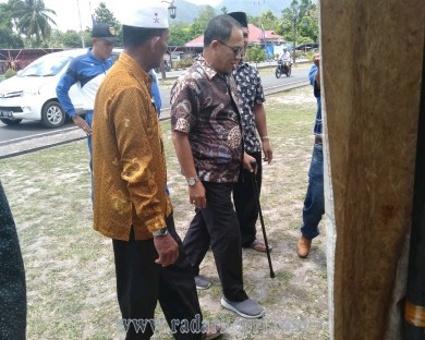 Pantaun radarkepri.com, Bupati Lingga hadir berjalan menggunakn tongkat, seperti sedang kesakitan dikaki kirinya.