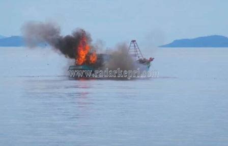 Terempa, Radar Kepri-Panglima Armada Barat (Pangarmabar), Laksamana Muda Widodo menjadi saksi ditenggelamkannya 3 unit kapal asing yang sudah lama di amankan ditangkap Lanal Terempa, Jumat (05/12) pukul 10 Wib. Kapal ditenggelamkan dengan cara diledakan di peraiaran Desa Tanjung Pedas, Siantan Barat Daya, Anambas. Hal ini sesuai dengan gagasan Menteri Kelautan dan Perikanan RI, Susi Pudjiastuti.