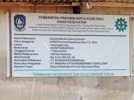 Dalam tulisan kali ini, investigasi dan penelusuran radarkepri.com dilapangan. Proyek pembangunan gedung farmasi di Pulau Dompak dimenangkan oleh PT Subana Kreasi Megah dengan nilai kontrak Rp 9 312 905 413. Dan PT Wandra Cipta Engineering Consultant selaku pengawas serta Dinas Kesehatan Provinsi Kepri sebagai pemberi pekerjaan.