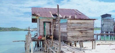 Kayu lapuk ditambah atap yang berkarat dan bolong. Muncul kesan tinggal menunggu hitung waktu roboh saja. Pemandangan ini sangat kontras dengan laut yang indah dengan kondisi rumah tersebut.