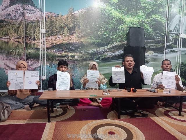 SHetty Yurdani (43), bersama anaknya F dan didampingi oleh Kuasa Hukum Mounieka Suharbima, S.H, saat melakukan Konfrensi Pers di km 8 tepatnya di Kantor Cabang Nahdlatul Ulama menguraikan