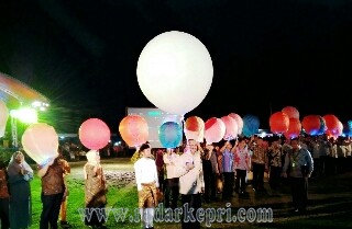 Natuna, Radar Kepri-Pelepasan lampion dan menekanan bel/Serine oleh Bupati Natuna Drs. H.Hamid Rizal, di dampingi para FKPD, Perwakilan Kementerian Pariwisata Republik Indonesia, Kepala Dinas Pariwisata Propinsi Kepri Buralimar, menandakan dibukanya Pekan Expo Pariwisata Natuna yang disejalankan dengan hari jadi Kota Ranai yang ke 146.