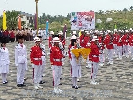 Sedangkan petugas pembawa baki bendera pusaka pagi Jumiati, dari SMAN Bunguran Barat,