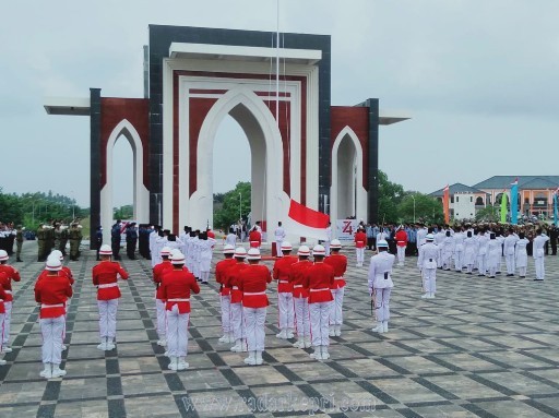 Pada upacara HUT RI ke-74 tahun 2019 ini, peserta upacara memang terlihat agak dibatasi dari yang biasanya, sehubungan lokasi halaman Masjid Agung tidak seluas lapangan Pantai Kemcana Ranai.