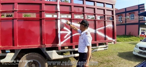 Lingga, Radar Kepri-Dinas Perhubungan (Dishub) Kabupaten Lingga dan Satlantas Polres Kabupaten Lingga melakukan sosialisasi dan penertiban truk overdimension Over Load (Odol). Untuk kendaraan truk yang melanggar aturan, petugas Kemudian melakukan penandaan pada box truk untuk di lakukan pemotongan.