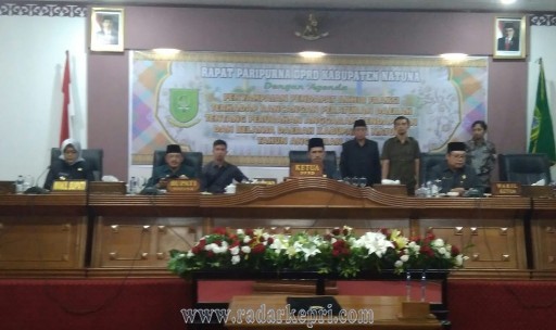 Natuna, Radar Kepri- Bupati Natuna Drs H Hamid Rizal, mengucapkan terimakasih atas saran dan kritikan dari fraksi-fraksi partai politik saat Pengesahan APBD-P Minggu (30/09) di Gedung DPRD Natuna.
