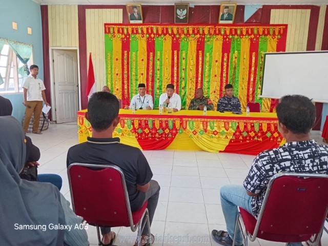 Sosialisasi dan pertemuan dengan masyarakat penerima bantuan dilaksanakan di Gedung pertemuan Kecamatan Senayang, Kab Lingga.