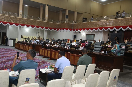 Dompak, Radar Kepri-Dewan Perwakilan Rakyat Daerah (DPRD) Kepri menggelar sidang Paripurna dengan agenda, laporan akhir Pansus Ranperda Berciri Khas Melayu yang juga dihadiri oleh Gubernur Kepulauan Riau, Nurdin Basirun di Kantor DPRD Kepulauan Riau, Dompak, Selasa (9/7/2019).