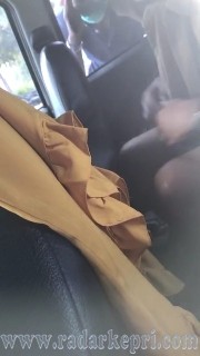 Sepasang insan berseragam coklat yang bertulisan kabupaten bintan hanya sibuk memperbaiki celananya pendek putihnya di tempat duduk dan didapatkan juga tissu yang berserakan didalam mobil.