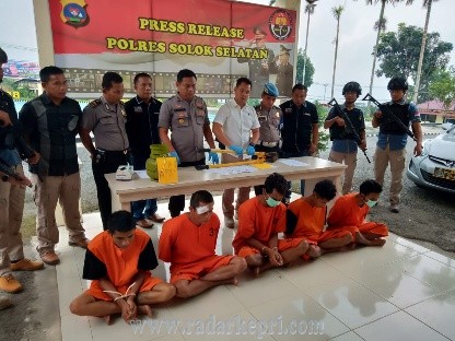 Solok Selatan, Radar Kepri-Enam orang komplotan pelaku pencurian ternak (curnak) yang beraksi di Solok Selatan (Solsel) di sebelas lokasi berhasil diringkus tim Opsnal Satreskrim Polres Solsel pada Senin (7/10) sekira pukul 01.00 WIB.