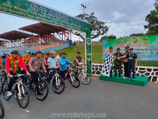 Untuk Pelepasan peserta bersepeda dipimpin oleh Sekda Kab. Lingga DR. H. Muhammad Juramadi Ersram, S.H., M.T., M.H didampingi Ketua DPRD Kab. Lingga Ahmad Nazruddin, Kapolres Lingga AKBP Joko Adi Nugroho, S.I.K., M.T dan Pabung Kodim 0315/Bintan MAYOR INF T. Telaumbanua.