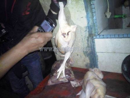 Didalam gudang Rumah Toko (Ruko) tempat penyimpanan daging ayam potong illegal tersebut dikabarkan milik Beyam. Ditemukan daging yang telah lama disimpan, sehingga membusuk dalam gudang berlantai III itu.