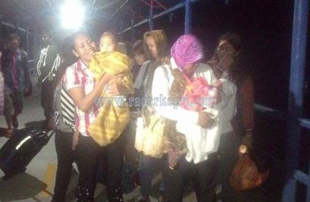 Tanjungpinang, Radar Kepri-Dua orang bayi, Muhamad Bahktiar berumur 15 hari dan Hefren Kistiak Filimon (6) bulan menangis tersedu-sedu dipelukan ibunya, Atik Ujaini (36) dan Helena (25) setelah turun dari kapal Telaga Ekpress yang ditumpanginya di pelabuhan internasional Sri Bintan Pura, Tanjungpinang, Kamis (26/03) sekitar pukul 20 00 Wib.