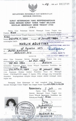 Bermodal ijazah ujian persamaan tingkat SMA inilah Marlin Agustina percaya diri akan mampu memimpin Kepri mendampingi Ansar Ahmad SE MM dalam Pilgub Kepri.