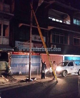 Petugas dari unit gangguan PLN Cabang Tanjungpinang terlihat segera turun dan mamadam aliran listrik.”Hanya kabel yang berpijar karena konslet bang, tak sampai kebakaran.”sebut seorang petugas tersebut. Petugas PLN kemudian memperbaiki dan mengganti kabel tersebut.