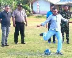 saat menghadiri acara pembukaan open turnamen Pekan Olahraga Desa (Pordes) Cup 2019, di Desa Pian Tengah, Kecamatan Bunguran Barat kemaren.