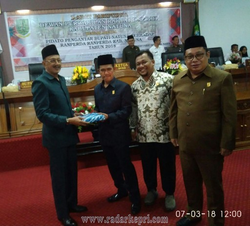 Natuna, Radar Kepri-DPRD Kabupaten Natuna menerima 7 Ranperda dari Bupati Natuna Drs H Hamid Rizal, M. si. Rabu, (07/03) pada pukul 11.20 Wib,siang ini.