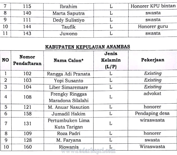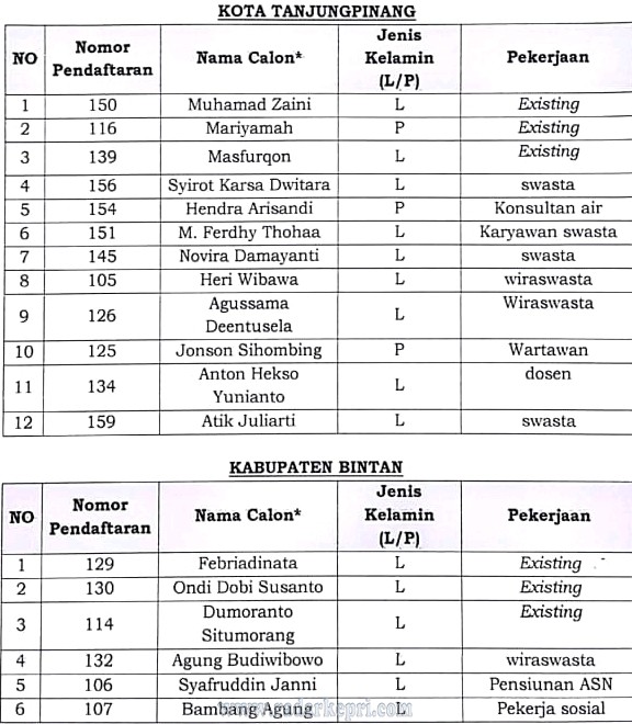 Berikut calon anggota Bawaslu dari Kota Tanjungpinang, Bintan dan Anambas yang lolos seleksi 1.