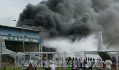 Kepulan asap hitam itu terjadi karena ada kain dalam gudang yang terbakar.”Tidak ada kerugian alutista.”tegasnya.