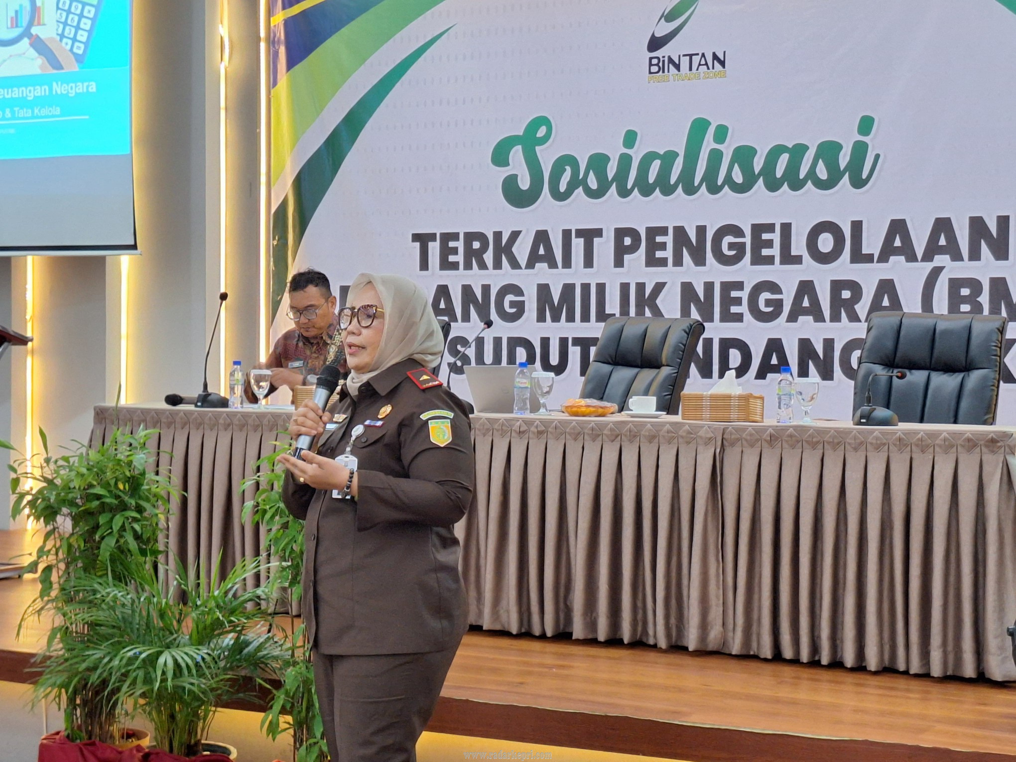 Bintan, Radar Kepri-Wakil Kepala Kejaksaan Tinggi Kepulauan Riau Irene Putrie menjadi narasumber pada kegiatan Sosialisasi terkait Pengelolaan BMN dari Sudut Pandang Hukum yang diselenggarakan Badan Pengusahaan Kawasan Perdagangan Bebas dan Pelabuhan Bebas Bintan Wilayah Kabupaten Bintan, bertempat di Jasmine Meeting Room Awandari Resort and Convention, Bhadra Resort Bintan, Jl. Raya Kawal KM. 25 Kecamatan Toapaya Kabupaten Bintan, Rabu (29/10/2025).