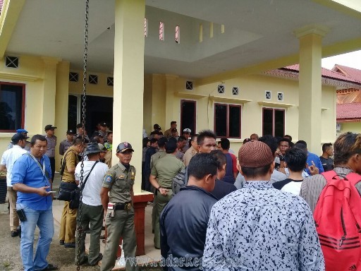 Sebagai usulan, akhirnya puluhan pendemo diarahkan masuk kedalam gedung pertemuan untuk melakukan heiring terkait permasalahan yang di serukan.