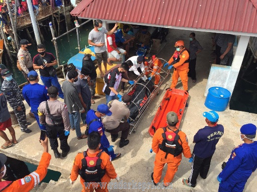 (17/04)2020 pukul 09.10 Wib RB 209 & Tim SAR Gabungan berhasil menemukan korban dalam keadaan meninggal dunia dari tempoh jarak kurang lebih 2.7 NM dari lokasi dan selanjutnya korban di evakuasi menuju rumah duka.