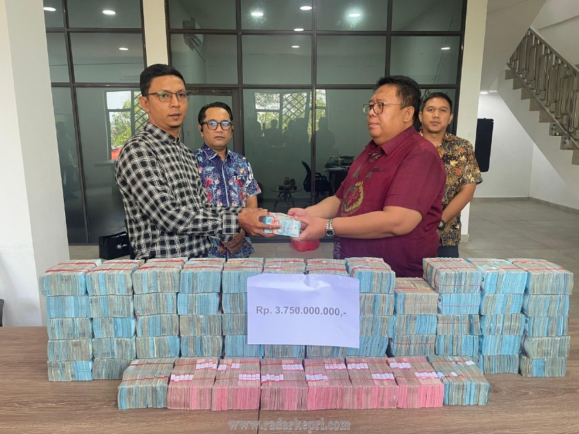 Uang sebesar Rp. 3,75 Milyar tersebut diserahkan langsung oleh istri tersangka didampingi Kuasa Hukumnya kepada Tim Penyidik yang dipimpin oleh Asisten Tindak Pidana Khusus Kejaksaan Tinggi Kepulauan Riau Mukharom, S.H., M.H. didampingi Kasi Penyidikan, Kasi Penkum dan Tim Penyidik yang dilaksanakan di gedung Pidsus Kejati Kepri, kemudian uang tersebut dititipkan di rekening RPL Kejaksaan Tinggi Kepulauan Riau.