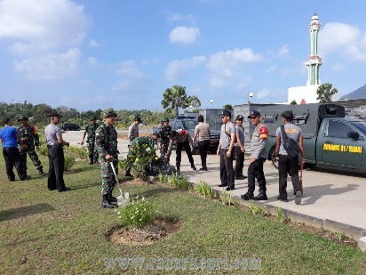 Natuna, Radar Kepri- Menjelang pelaksanaan tausiah Akbar oleh Ustad Abdol Somad, LC. MA. Rabu, (07/02) besok. Koramil dan Bhabinkamtibmas Polsek Bunguran Timur, serta Kecamatan Bunguran Timur selasa tanggal 6 Februari 2017 sekira pukul 07.30 wib sd 09.00 WIB pagi tadi lakukan gontoroyong bersama membersihkan lingkungan Masjid Agung Natuna yang akan digunakan untuk lokasi tausiah akbar Rabu (06/02) besok.