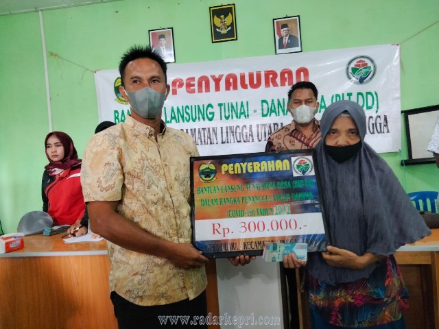 Lingga, Radar Kepri-Kepala Desa Duara, Kecamatan Lingga Utara, Kabupaten Lingga, Azhar menyalurkan Bantuan Langsung Tunai (BLT) Dana Desa (DD) kepada 194 Keluarga Penerima Manfaat, di Aula balai Desa, Kamis (2/6).