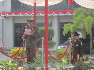 Hal disampaikan Jaksa Agung RI melalui Kepala Kejaksaan Tinggi Kepri, DR Asri Agung Putra SH MH saat memimpin upacara peringatan HUT RI ke 73 dihalaman kantor Kejati Kepri, Jumat (17/08) pagi.”Mari kita isi kemerdekaan ini dengan kerja keras, pengabdian yang nyata dalam memaksimalkan segala kekuatan, peluang, potensi dan sumber daya yang ada sebagai modal utama keberhasilan dan kemajuan bangsa dan negara.”terang Kajati.