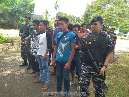 Tanjungpinang, Radar Kepri-Pangkalan Utama Angkatan Laut (Lantamal) IV Tanjungpinang mengamankan 27 orang TKI illegal yang baru pulang dari Malaysia di Perairan Kawal, Bintan, Sabtu (16/9/2017). 27 TKI illegal yang terdiri dari 23 pria, 3 wanita dan 1 anak kecil tersebut rencananya akan menuju Batu Besar, Nongsa, Batam.