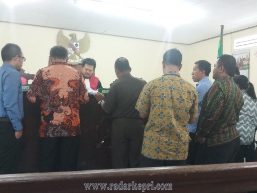Setelah mengecek dan menandatangani daftar bukti surat (T) yang diserahkan Kejati Kepri, hakim Guntur Kurniawan SH akhirnya berkata.”Sudah cukup ya dari Kejaksaan.”katanya.”Iya Yang Mulia.”jawab Sukamto SH dari Kejati.