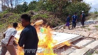 Lingga, Radar Kepri-Kesabaran masyarakat Sambau, Desa Limbung, Kecamatan Lingga Utara, Kabupaten Lingga atas tambang pasir yang diduga ilegal habis sudah. Jumat (09/03), puluhan warga membakar plank nama PT Tri Tunas Unggul (TTU)