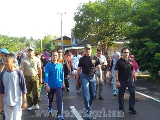Natuna, Radar Kepri-Didampingi Ketua DPRD Yusripandi dan Wakil Bupati Natuna Dra Hj Ngesti Yuni Suprapti, Bupati Natuna Drs H Hamid Rizal, Minggu (15/10) sekitar pukul 06.30 WIB melepas ribuan masyarakat natuna peserta jalan santai dalam rangka memeriahkan HUT Kabupaten Natuna ke 18 Tahun 2017.