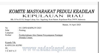 ” mari kita bantu masyarakat yang butuh keadilan dan organisasi harus saling bersinergi aksi ini akan di gelar di Mapolda kepri kalau tidak ada perubahan jadwal 22 april 2025 bertepatan dengan hari kartini masa di perkirakan 40 sampai 100 sampai hari yang sudah menyatakan siap tapi ke mungkin akan bertambah dan tentu sebagai senior saya ingat kan ke adek adek jika ada sosialisasi lain seperti di fasilitasi oleh kapolda kepri untuk audensi dan bisa menghadirkan pihak yang memiliki kapasitas dalam memberikan keputusan dan tentu isu yang kami bawak bisa di hilangkan dari tuntutan kita kan bukan ingin memanaskan suasana tapi mencari solusi dari maslah tapi kalau persoalan nya dari audensi tak ada kepastian maka kita pasti demo jalan terahir harus di tempuh adek adek kita tutup nya.(Aliasar)