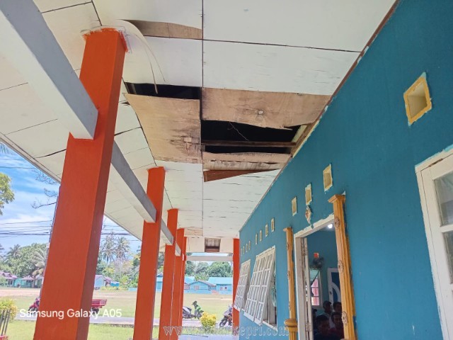 Selain itu, Plafon yang terbuat dari triplek itu, sudah banyak yang lapuk diduga akibat atap gedung bocor. Terjadinya hal tersebut karena diduga minim perawatan. Menjadi pertanyaan, kemana raib nya anggaran perawatan gedung tersebut.?