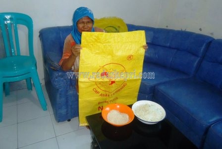 Wanita ini mengatakan seminggu yang lalu suaminya membeli beras cap Anak Terbang ukuran 25 kilogram seharga Rp 188 ribu di warung tidak jauh dari rumahnya. Saat dimasak dan di konsumsi, perutnya merasa sakit, sedangkan suaminya susah buang air besar. Warga Jalan Brigjen Katamso Gang Punak V, RT 5/RW 6, Kelurahan Tanjungunggat ini mengatakan, awalnya tidak ada yang aneh dengan beras tersebut sebelum dimasak. Saat di masak menjadi nasi, beberapa hari kemudian nasi tersebut tidak basi dan berbau.
