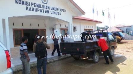 Sebanyak 230 kotak suara, yang di dalamnya sudah di isi berkas lainnya akan di sebar ke setiap kecamatan di Lingga. Jumlah kotak suara tersebut sama dengan jumlah TPS di kabupaten Lingga.”Satu kotak suara setiap TPS.”kata Agussyuriawan.