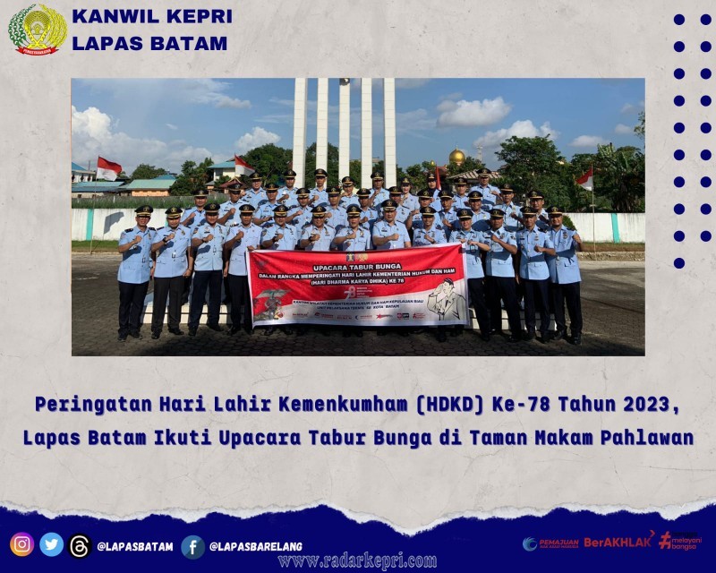 Batam, Radar Kepri– Lapas Kelas IIA Batam mengikuti kegiatan Upacara Tabur Bunga dalam rangka memperingati Hari Lahir Kementerian Hukum dan HAM (Hari Dharma Karya Dhika) di TMP Pusara Bhakti Bulan Gerbang. Rabu (09/08).