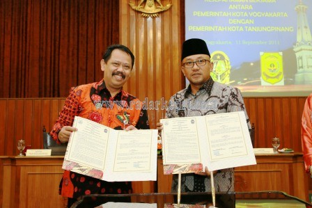 Penandatanganan nota kesepahaman bersama antara pemko Tanjungpinang dan Pemkot Jogjakarta dilakukan oleh Wakil walikota Yogyakarta, Imam Priyono DP, SE, M.Si dan Walikota Tanjaungpinang H. Lis Darmansyah SH.