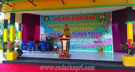 Natuna, Radar Kepri- Wakil Bupati Natuna Dra Hj Ngesti Yuni Suprapti, Selasa, (29/08) mendampingi Staf Ahli Kementerian Pendidikan dan Kebudayaan, Republik Indonesia, Bidang Inovasi dan Daya Saing, Ir. Ananto Kusuma Seta. M.sc.Phd. meresmikan laboratorium Seni Budaya dan Film “Marwah Bermadah” di halaman SMAN 2 Pering, Kecamatan Bungguran Timur.