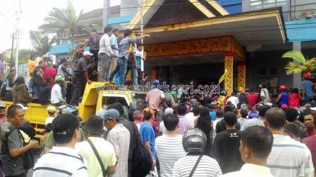 Hingga saat ini, para pendemo masih menggelar orasi di.depan kantor PLN, sempat terjadi saling dorong petugas dengan pendemo karena seorang mahasiswa ditahan didalam kantor PLN oleh petugas.(aliasar)