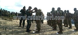 Sebelum pembaretan, para Gubernur berlari turun dari atas Kapal tempur TNI dengan wajah di coret coret loreng hitam menuju tepi pantai, 23 Gubernur langsung mengambil posisi pembaretan yang telah ditentukan panitian dari TNI.