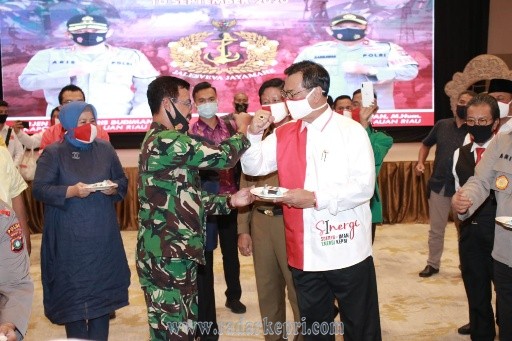 Dalam kesempatan itu juga HM Soerya Respationo secara langsung mengucapkan Selamat Dirgahayu TNI AL Ke 75 tahun kepada Komandan Pangkalan Utama TNI Angkatan Laut (Danlantamal) IV Tanjungpinang Laksamana Pertama TNI Indarto Budiarto, S.E, MHan.
